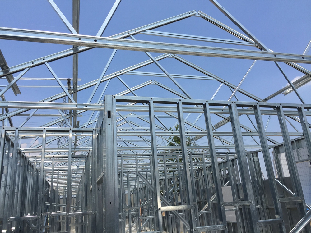 โครงสร้างเหล็กกล้าเบาของโครงสร้างที่พักอาศัยทั้งหมดใช้ส่วนประกอบระบบเหล็กผนังบางขึ้นรูปเย็น เหล็กเสริมด้วยแผ่นสังกะสีรีดเย็นที่มีความแข็งแรงสูงป้องกันการกัดกร่อนเป็นพิเศษ ช่วยป้องกันการกัดกร่อนของแผ่นโลหะในกระบวนการก่อสร้างและการใช้งานได้อย่างมีประสิทธิภาพ เพิ่มอายุการใช้งานของส่วนประกอบเหล็กกล้าเบา